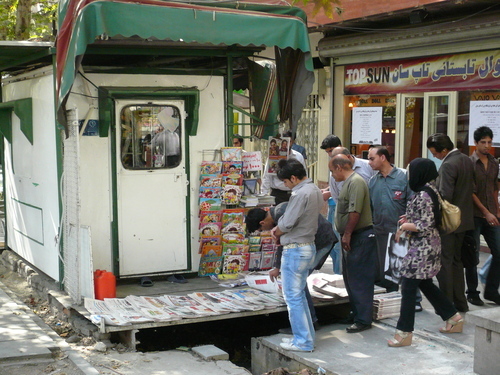 Eingereist bin ich mit meinem Halstuch um den Po und hochgeschlossenes Jäckli, wobei ich bei den 23 Grad in Teheran fast verschwitze. Zudem kommt man sich neben all den chic gekleideten Frauen ziemlich doof vor. Wir finden einen Markt mit einem Kleiderladen nach dem anderen. So cooool. Hmmm, keiner hat ein Shirt, welches über den Po reicht. Sind wir nun im Iran oder nicht?!? Wir werden trotzdem fündig und kaufen ruckzuck ein Shirt, Jeans und ein neues Kopftuch für mich. Meine hitzschwitz Kleider packe ich in die Einkaufstüte und schlendere als neuer Mensch aus dem Laden (inkl. Zetteli am Füdli aber das sieht man ja nicht unter dem Shirt...). Die Verkäuferin lernt seit 2 Monaten Deutsch und hat diese Gelegenheit genutzt. Sie zeigt mir wie man das Kopftuch trägt und packt mir die Jeans (die ich nicht will, da ich ja meine schon trage) in die Tüte. Auch Opi ist ganz verwirrt, als wir "ohne Jeans" aus dem Laden laufen.