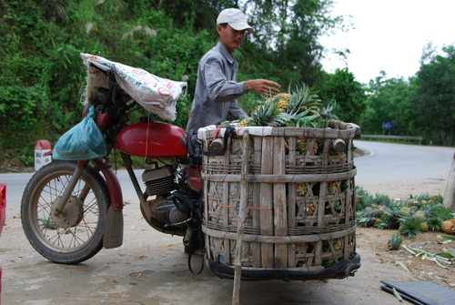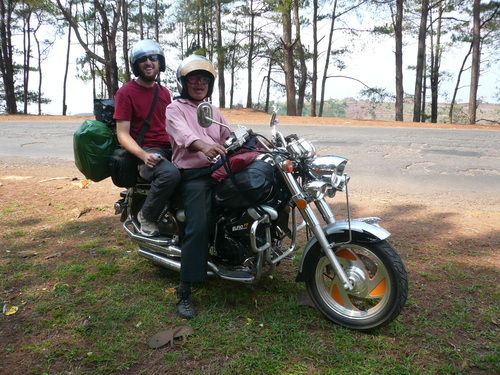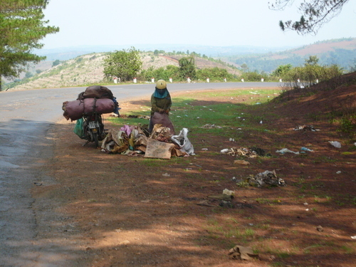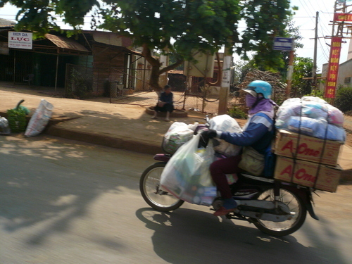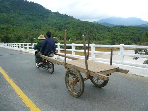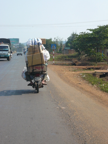 Quin hat bei seinem Motorrrad einen Gepäckträgerbruch. Kein Wunder bei diesem Gewicht von Rotsch seinem Rucksack. Ein Rucksack auf dem Gepäckträger ist zwar noch nichts Weltbewegendes in Vietnam, da lässt sich noch viel mehr transportieren, hier die Bilder ;-)