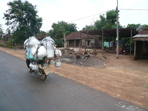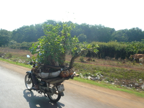 Den Tageshit konnten wir leider nicht in unserer Kamera festhalten. Ein Töfflifahrer transportiert vorne ein ca. 3 Meter langes Rohr mit einem Durchmesser von 1 Meter. Kein Problem wenn nun die Sicht versperrt ist. Gukt er halt durchs Rohr hindurch und kurvt so durch den Verkehr.